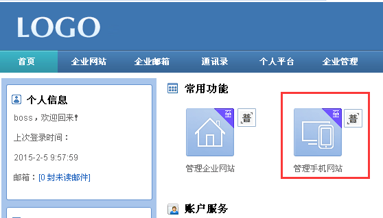 4、登陆www.webportal.cc 网站后台—进入“管理手机版网站”