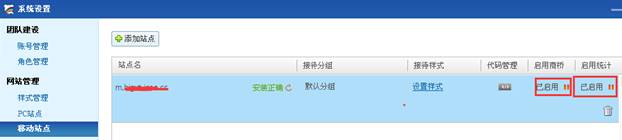 2、登陆后点击右上角的系统设置-----移动站点-----添加站点----输入站点名称(网址)